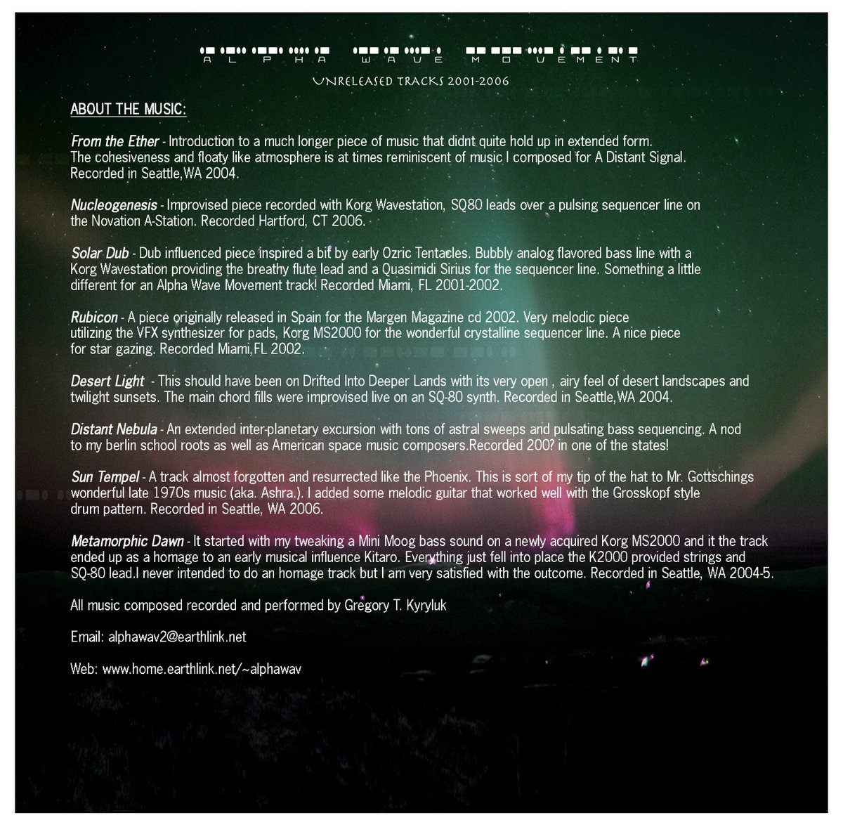 label featuring ambient/space electronica artist Alpha Wave Movement, Biome, Subtle Shift, Thought Guild & Open Canvas. Focus: intelligent, atmospheric electronic music from the wellspring of 1970's era progressive rock, space music, ambient, jazz, new age & drone aesthetics.